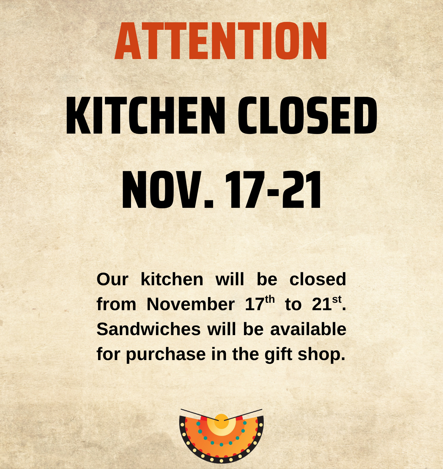Kitchen Closed from November 17 – 21